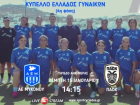Παρακολουθήστε σε ζωντανή μετάδοση την Τρίτη (15/1 | 14:15) από το γήπεδο της Άνω Μεράς στη Μύκονο την αναμέτρηση της 4ης φάσης του Κυπέλλου Ελλάδας Γυναικών μεταξύ της ΑΕ Μυκόνου και του ΠΑΟΚ. ...
