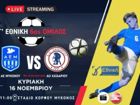 Για την 11η αγωνιστική του πρωταθλήματος της Γ’ Εθνικής η Α.Ε Μυκόνου αγωνίζεται την Κυριακή (30/11) στην Αθήνα με αντίπαλο την ομάδα του Σαρωνικού Αναβύσσου! ...