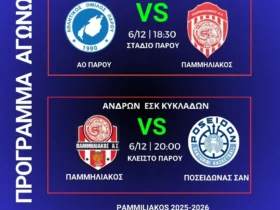 Παρακολουθήστε σε ζωντανή μετάδοση το Σάββατο (6/12 | 20:00) από το Κλειστό Γυμναστήριο Μάρπησσας τον αγώνα Παμμηλιακός – Ποσειδώνας Σαντορίνης για το πρωτάθλημα Ανδρών της ΕΣΚ Κυκλάδων. ...